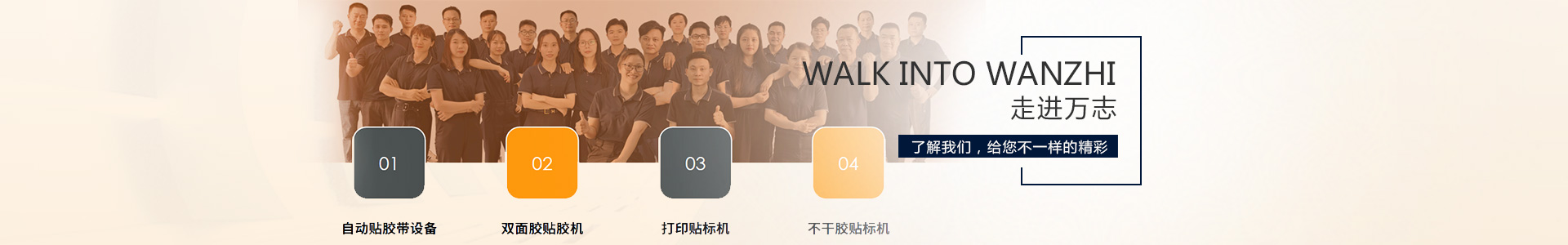 [ 東莞市萬志自動(dòng)化科技有限公司]成立于2014年,坐落于中國制造名城東莞,公司專注于研發(fā)制造自動(dòng)貼膠帶設(shè)備、自動(dòng)貼標(biāo)設(shè)備及行業(yè)非標(biāo)專機(jī)訂制服務(wù)。