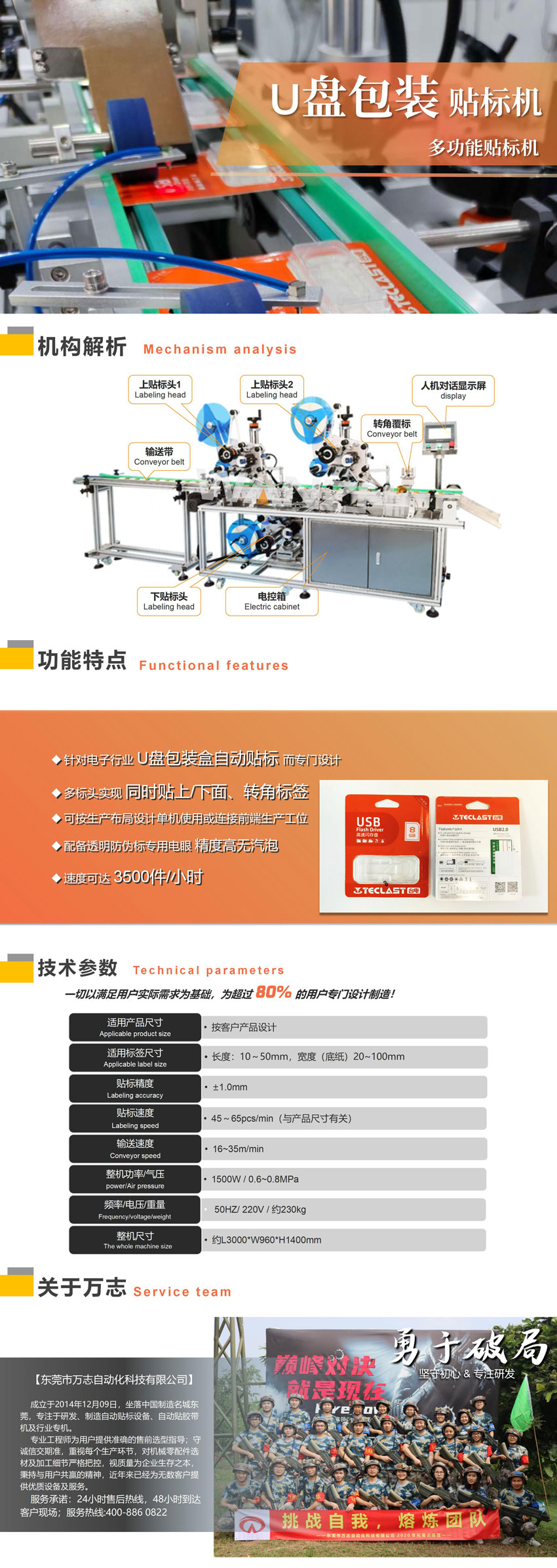 包裝盒多標(biāo)貼標(biāo)機(jī)適用于在U盤包裝盒子平面+拐角防偽標(biāo)貼標(biāo),1#2#標(biāo)頭實(shí)現(xiàn)上下兩面同時(shí)貼標(biāo),3#標(biāo)頭貼防偽標(biāo),精度高,無汽泡;配備前端輸送把產(chǎn)品自動(dòng)分開間隔進(jìn)入輸送貼標(biāo);可對(duì)接生產(chǎn)線或單機(jī)操作,方便生產(chǎn)布局。