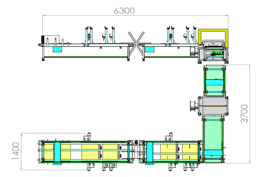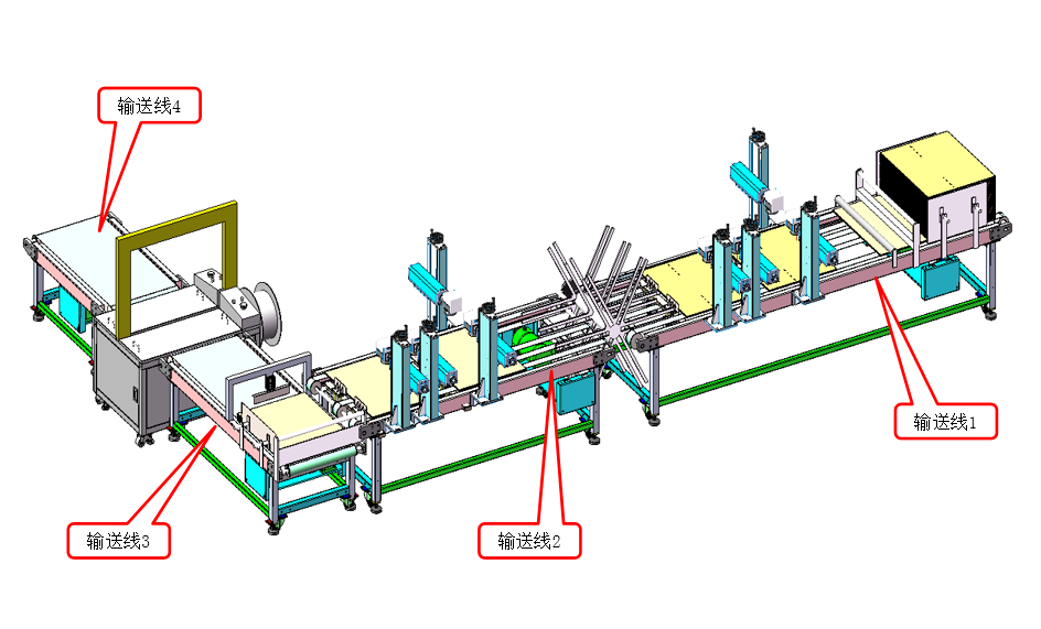 7.折疊好的產(chǎn)品流入打包機(jī),打包機(jī)將產(chǎn)品進(jìn)行打包扎帶,兩條扎帶打包完成后產(chǎn)品繼續(xù)流入下一工位以上為完整作業(yè)流程,產(chǎn)線按此循環(huán)動作