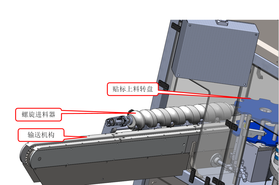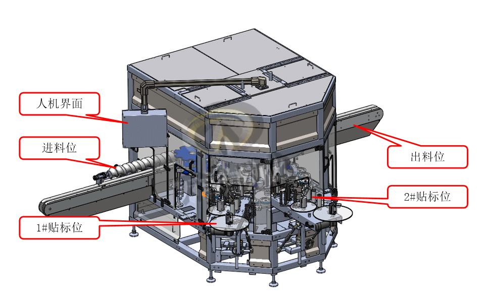 5.貼標完成后隨轉(zhuǎn)盤向后運動至出料星輪